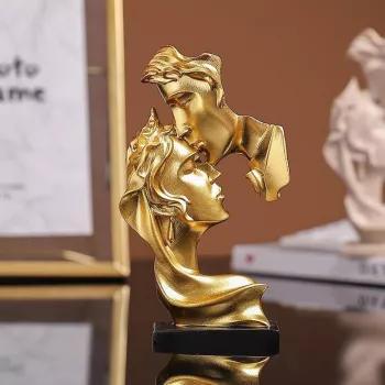 Golden Passionate Kiss Sculpture Luxury Resin Lovers Statue